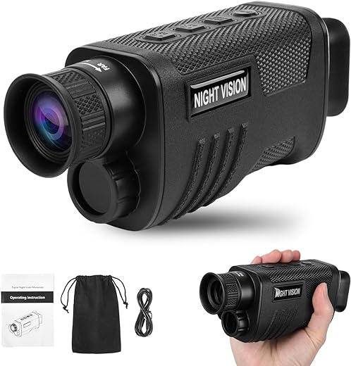 • Lightweight and Portable Design: This digital infrared night vision features a wrist strap and handheld design, making it easy to use with one hand. Its lightweight structure and dimensions of 160mm*70mm*55mm make it an ideal choice for outdoor adventures. The monocular night vision device comes with 1x 32GB storage card, 1x USB data transfer and charging cable (Type-C), 1x card reader, 1x wrist strap, 1x storage bag, 1x cleaning cloth, and 1x user manual.