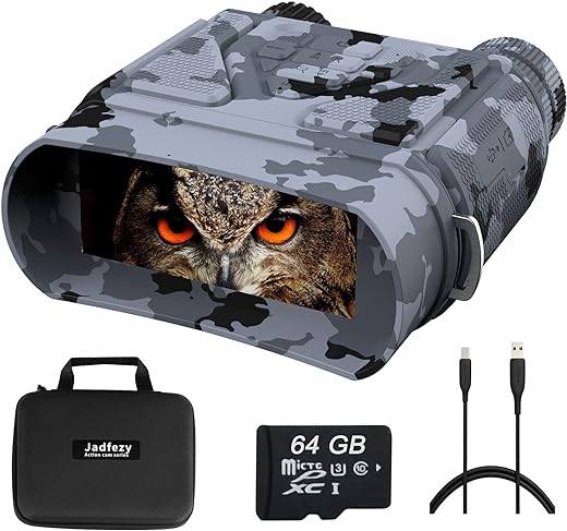 - 【Rechargeable Lithium Battery Night Vision】Jadfezy night vision goggles built-in a Li-ion rechargeable cell of 2800mAh, which allows you to view animals in pitch dark night for hours. They don’t require any AA batteries. Save money & the environment.