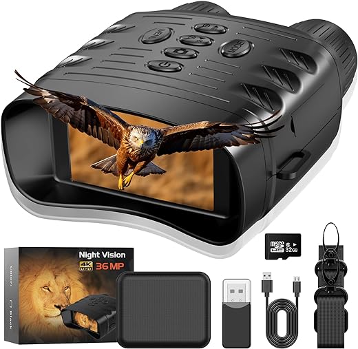 - 【3” Large HD Viewing Screen】4K 36MP of night vision with 3 modes(taking photos, recording a video, and playback), you can capture high-definition pictures & videos with its outstanding optical clarity in the daytime, low light, or nighttime. Perfect binoculars for outdoor activities, night hunting, patrol detection, security and surveillance, search & rescue, camping, and watching wildlife and scenery.