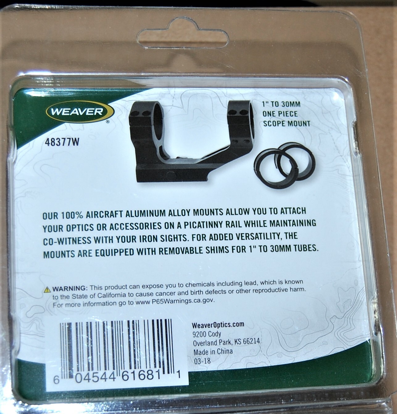 - Package Contents: Weaver 1 Inch to 30mm SPR Optics Mount Rifle Scope Base (Model: 48377W)